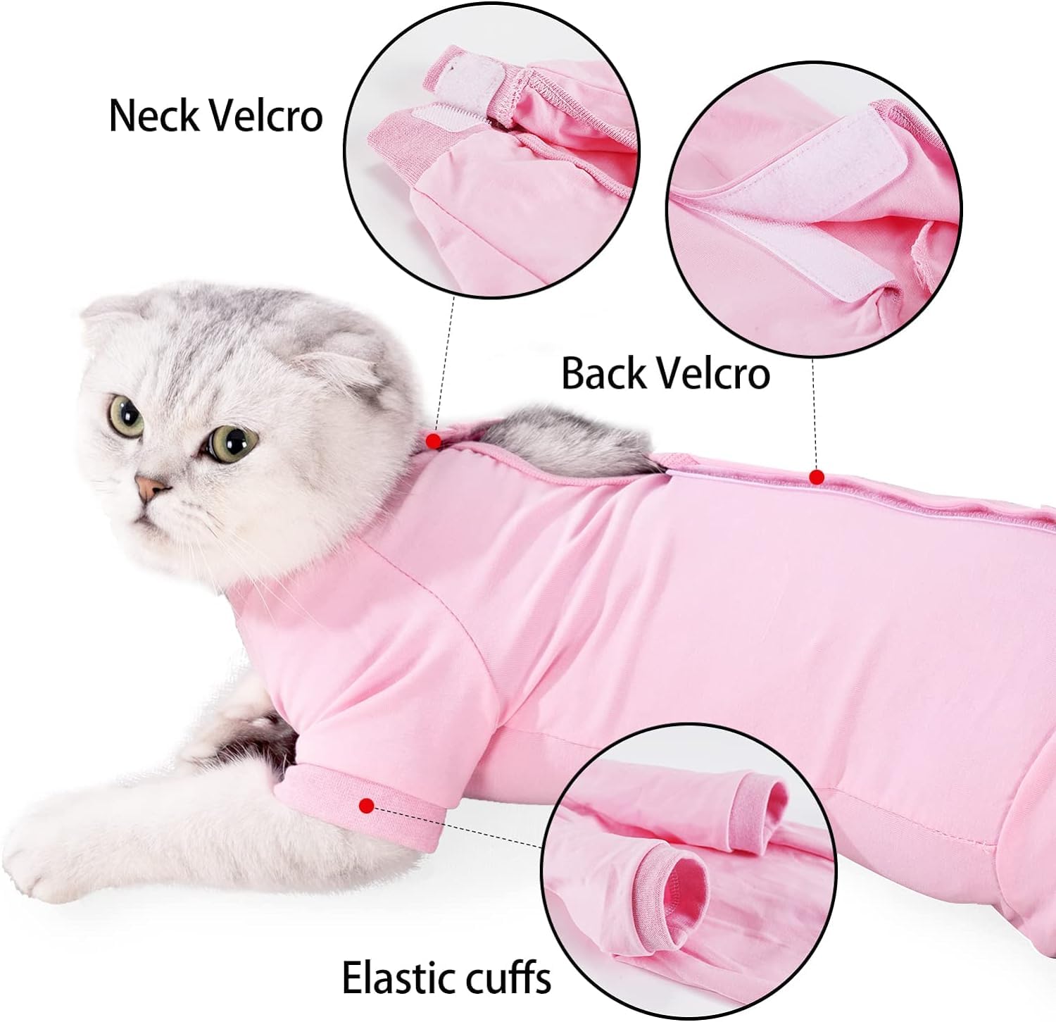 - Quality Assurance: High-elastic Breathable Fabric, stretch neckline, soft and comfortable, breathable. Velcro design for easy on and off. When wearing a cat recovery suit, your pet cat can move freely without restriction, making it easier for you to take care of your pet!