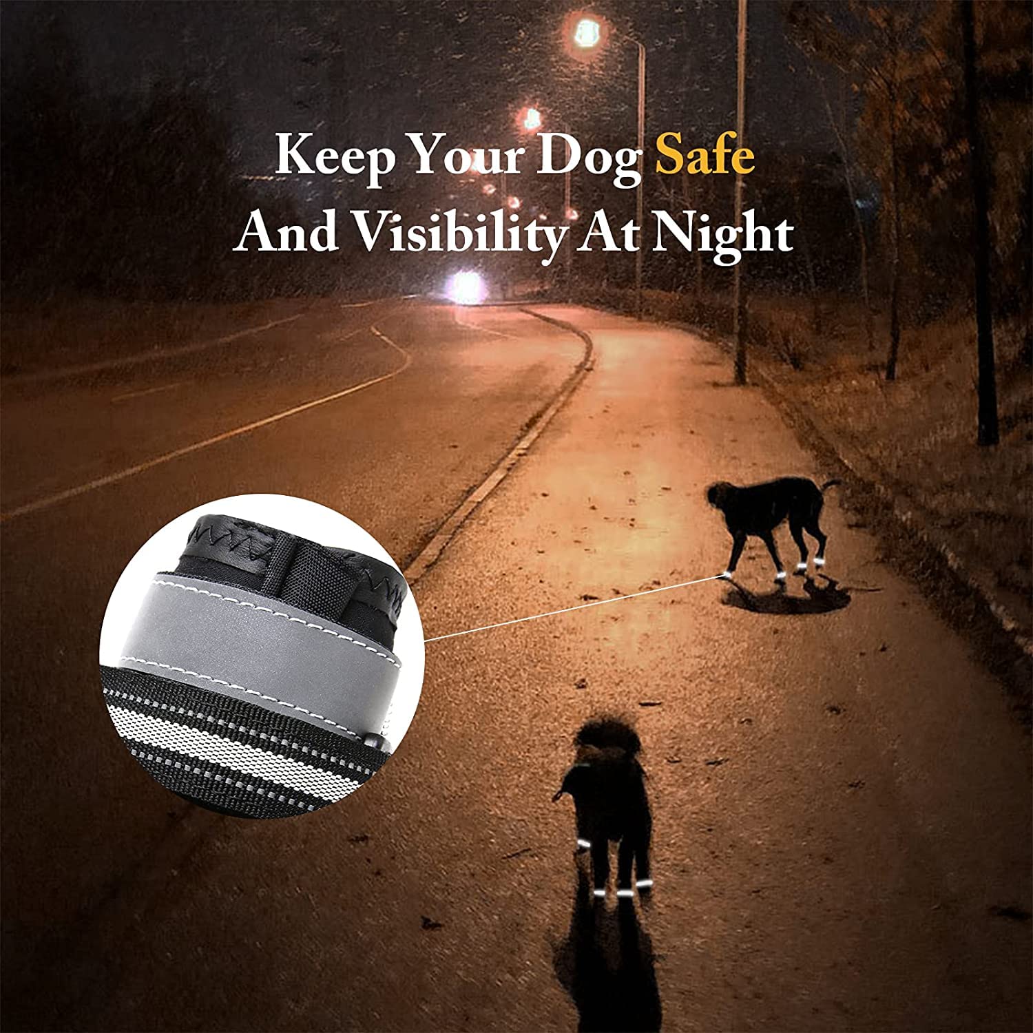 • High-quality materials: Four ways stretch design with high quality, wear resistant, to bear or endure dirty, have cute pet paw embroidery, soft and hand washable, fashionable yet durable. Durable soles, tough anti-slip sole provides stability and traction, helps dogs with mobility and stability on tile and the sand. 3M reflective strap, microfiber nylon reflective webbing rubber outsole for small to large dogs.