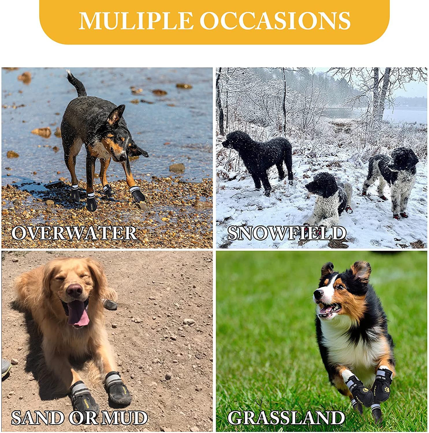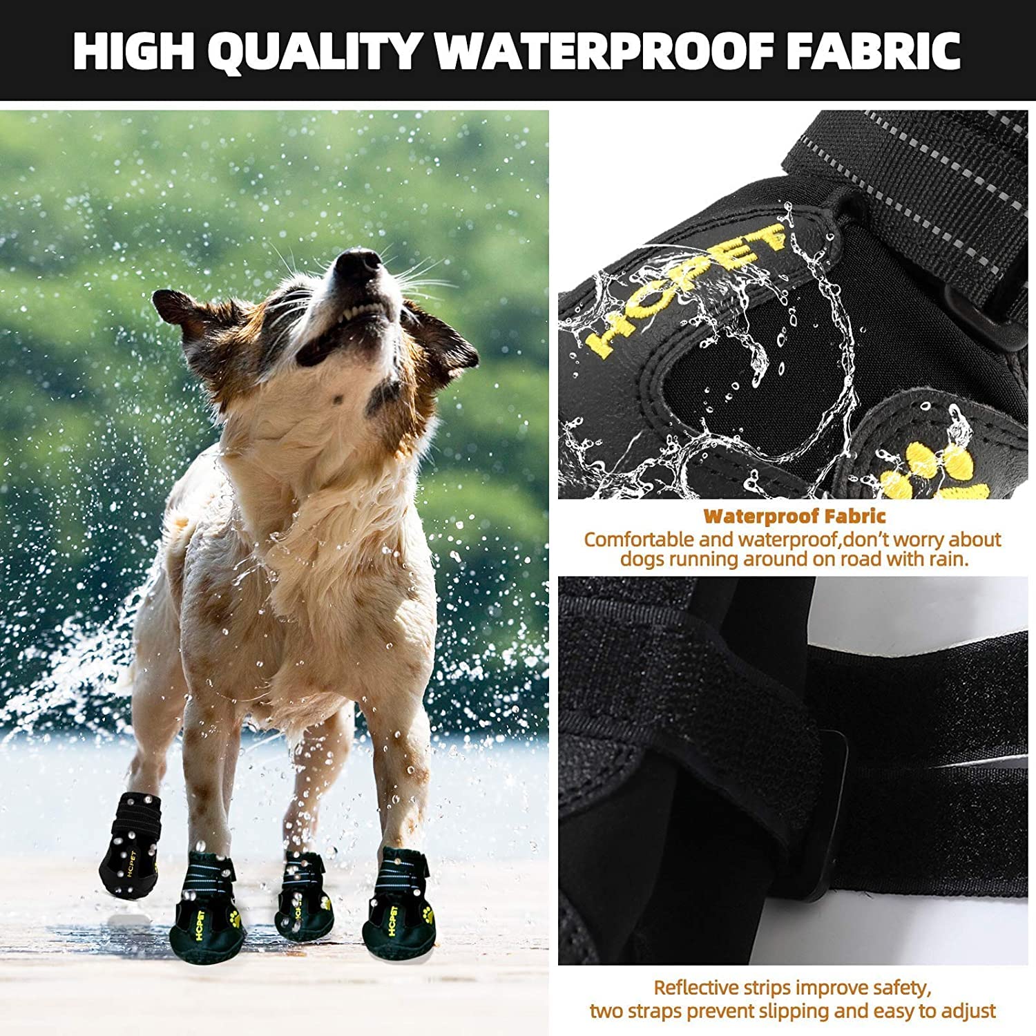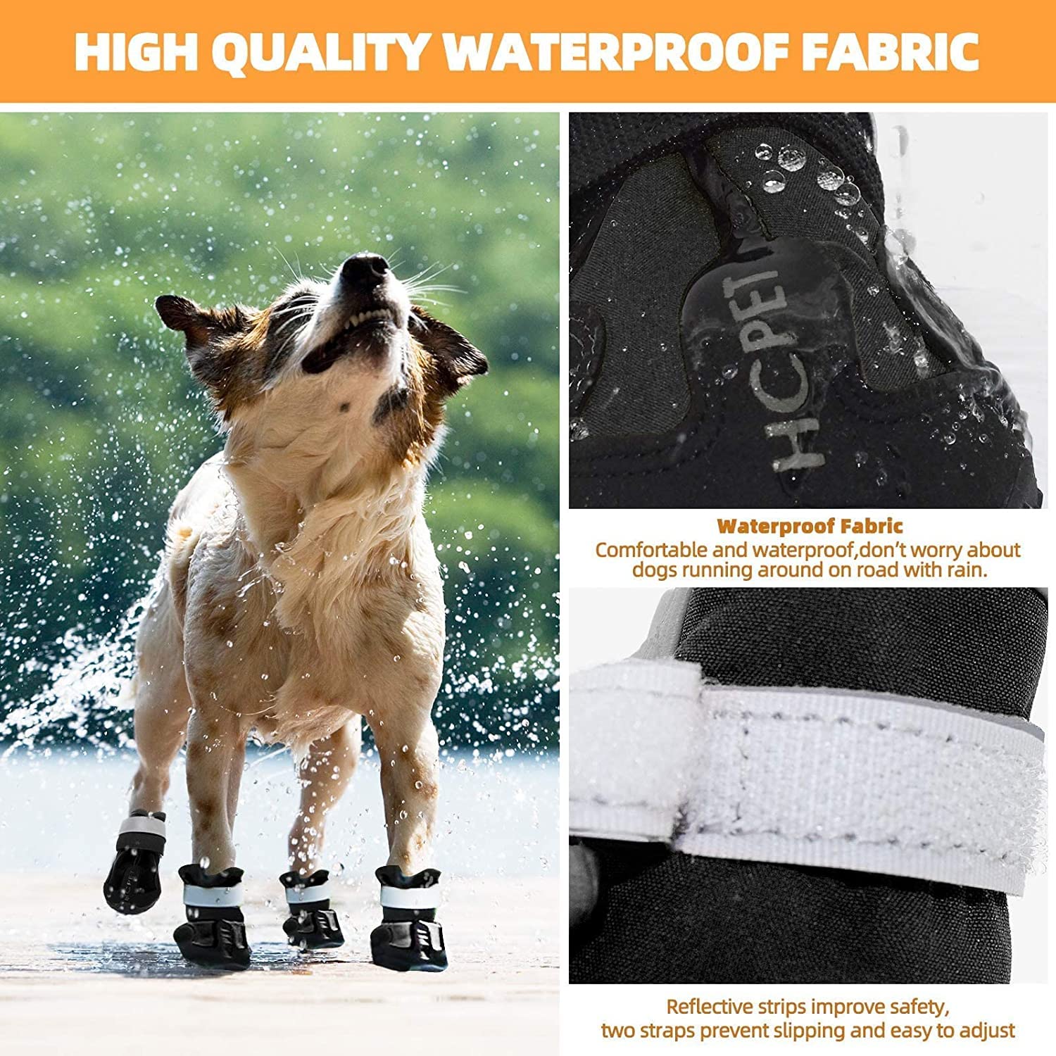 KUTKUT Dog Pack of 4pcs Boots, Waterproof Dog Shoes, Dog Booties with Reflective Rugged Anti-Slip Sole and Skid-Proof, Outdoor Dog Rain Boots for Medium to Large Dogs, Four Ways Stretch Paw Protectors (Size: 4)