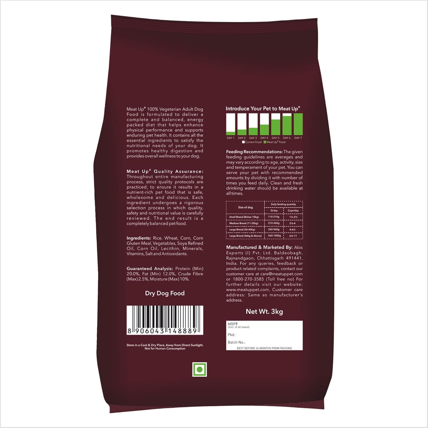 Meat Up 100% Veg Adult Dry Dog Food, 3kg (Buy 1 Get 1 Free)