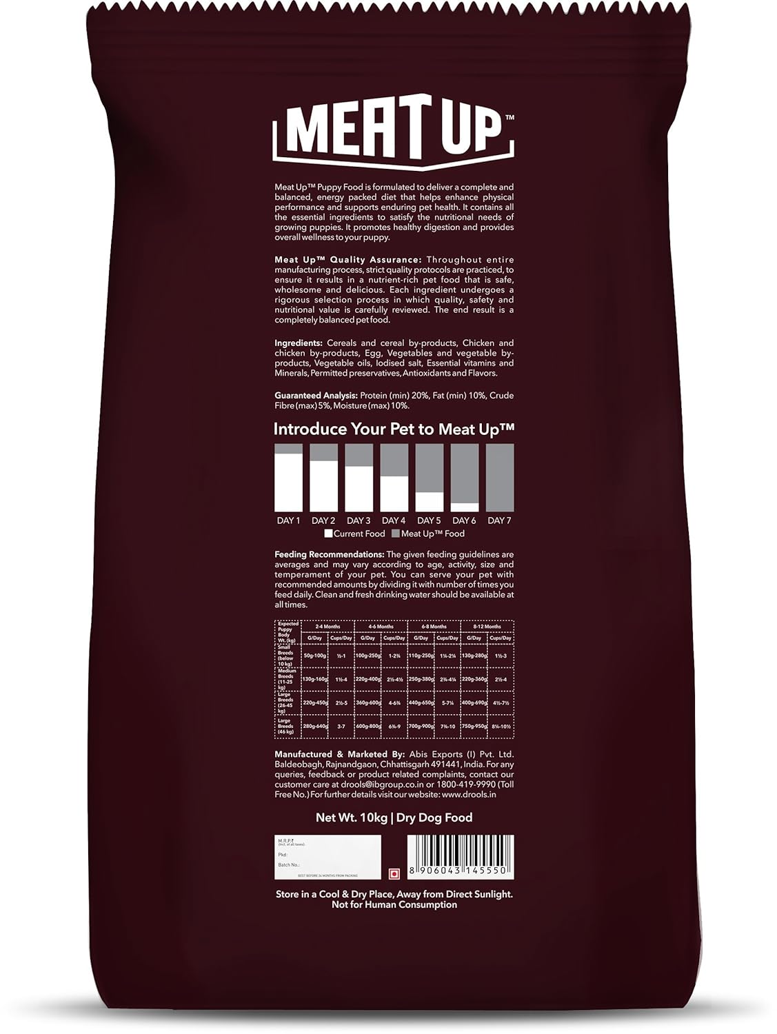 Meat Up Puppy Dry Dog Food, Chicken Flavour, 10 KG (Buy 1 Get 1 Free)