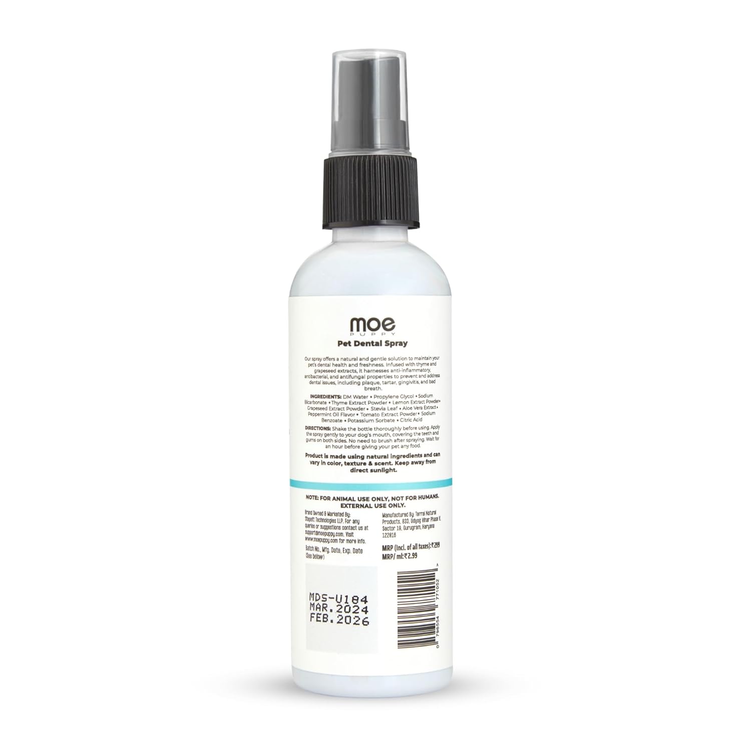 - Daily Dental Spray: Our all-natural Dog Mouth Spray, enriched with Aloe Vera, Grapeseed Extract, Thyme, and Lemon Extracts, supports Dental Care for Dogs by maintaining fresh breath and promoting clean teeth for a healthier mouth