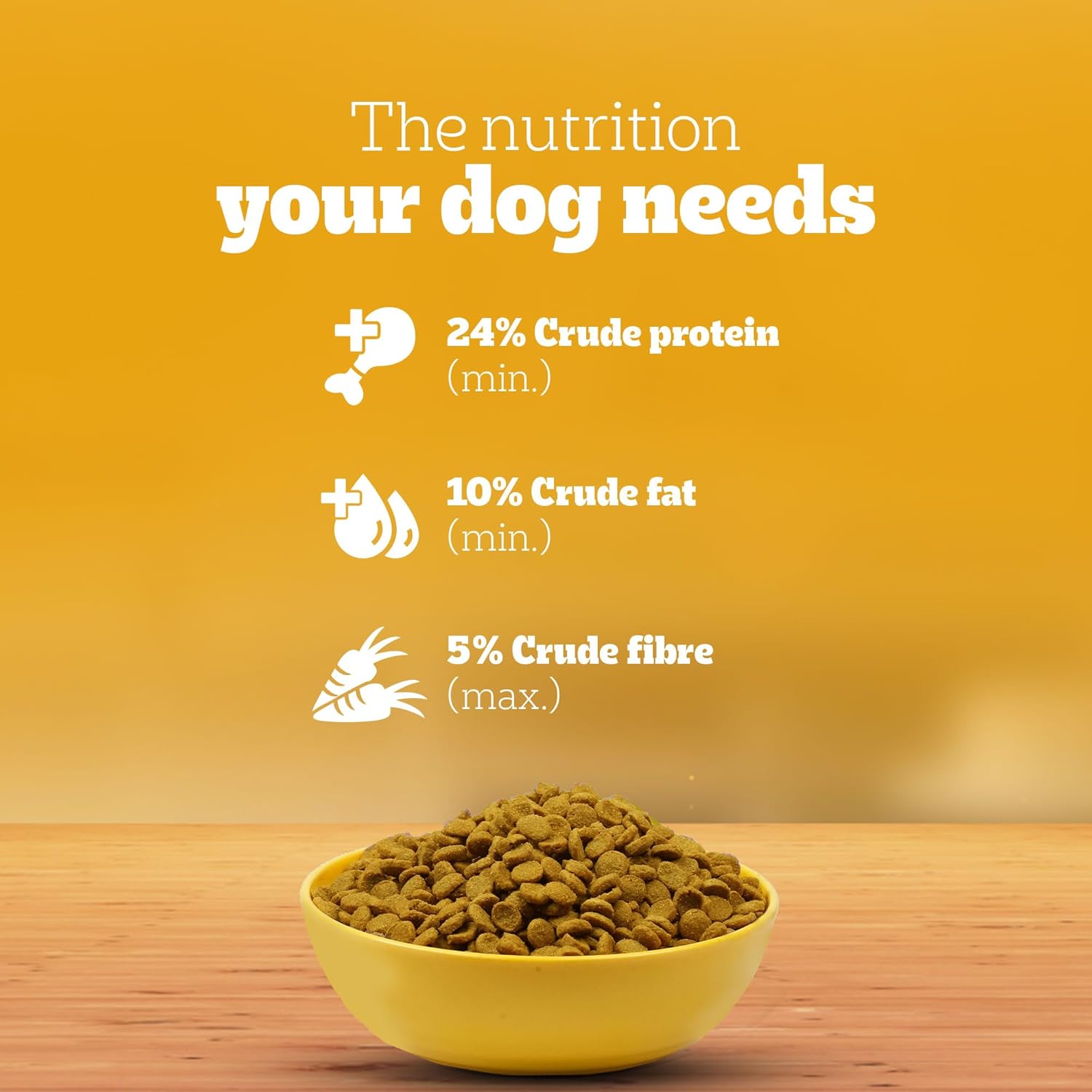 - HEALTH BENEFITS: When fed as recommended, this dry dog food supports healthy muscles & bones (Quality Protein & Calcium), brain & vision development (DHA) and a healthy digestive system (Dietary Fibre)