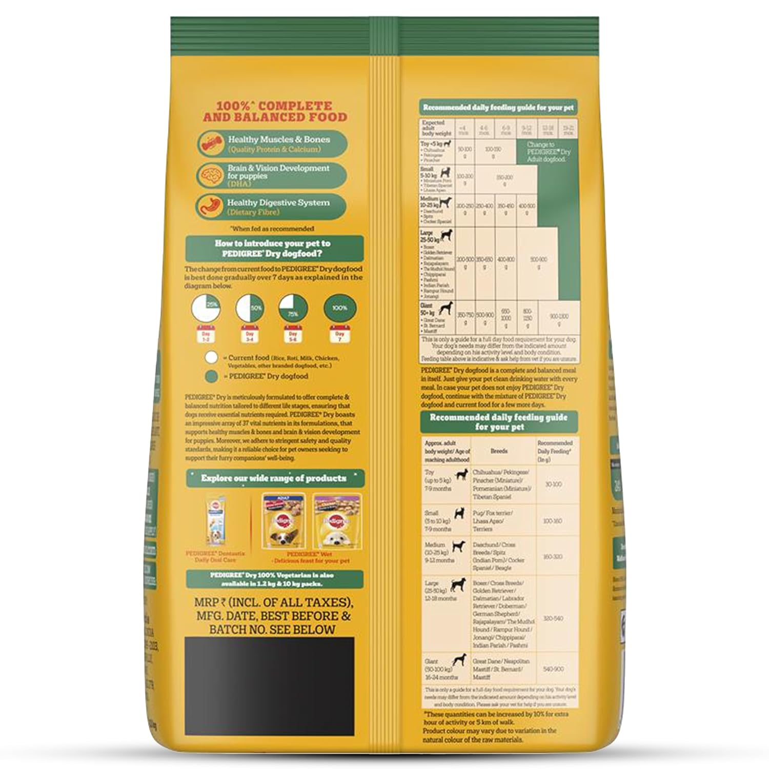 - DELICIOUS FLAVOUR: Pedigree Adult & Puppy Dry Dog Food, 100% Vegetarian, is packed with mouth-watering kibbles to delight your dog