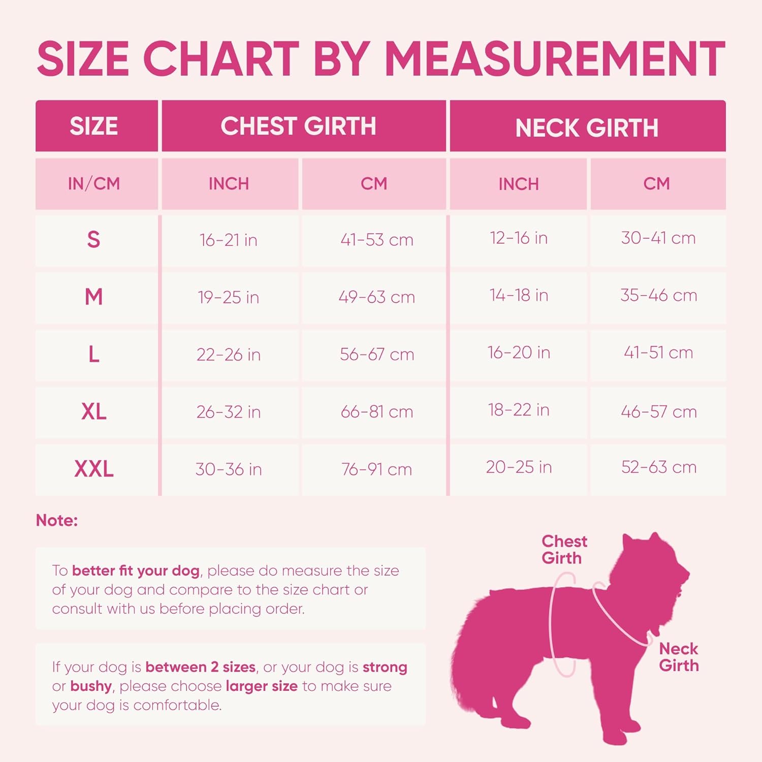 • 5 Sizes available :S, M, L, XL, XXL- fits for nearly Medium and Large breed dogs, Such as Teddy, Beagle, Poodle, Bulldog, Labrador, Golden Retriever, etc. If your dog is between sizes, or if dog is Strong of Bushy, we suggest you select larger size to make sure your dog is comfortable.