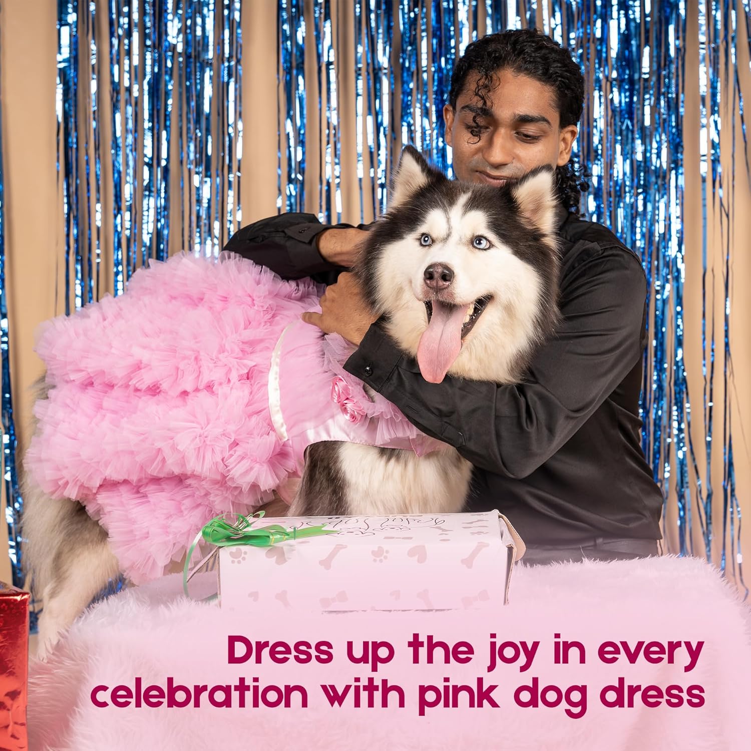 Puptail Dog Dress with Lovely Dog Bandana Dog Cloths for Medium Dogs and Large Dogs Like Shish tzu, Labrador, Golden Retriever, Pug and Cat Cloths. (M, Pink)