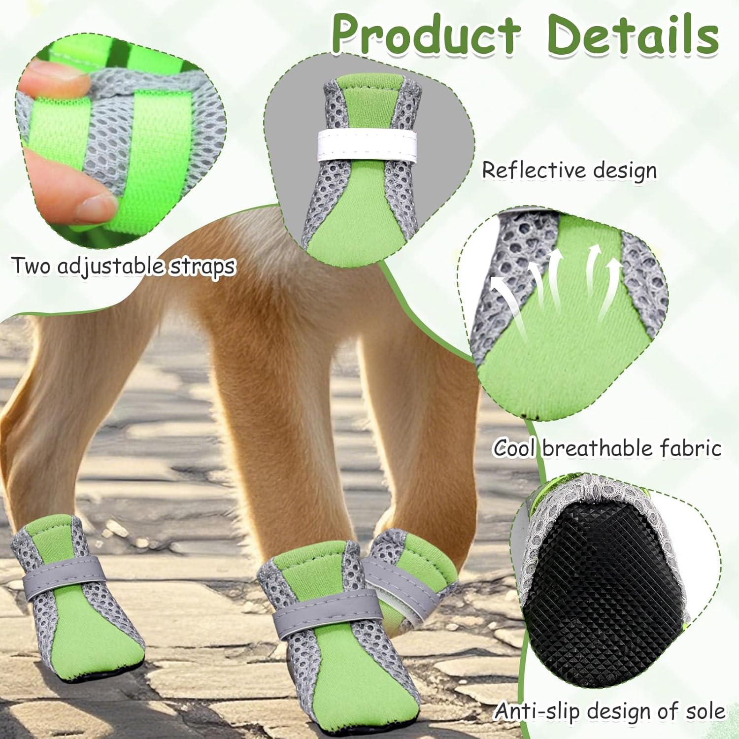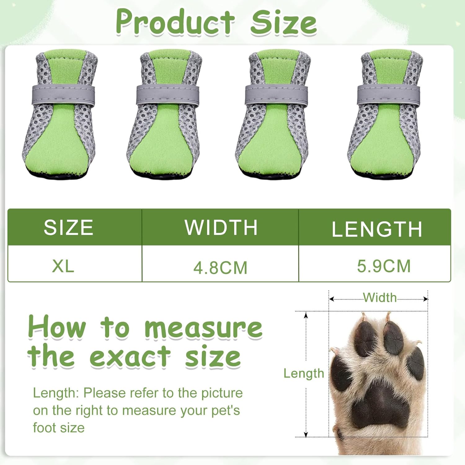 Waterproof Dog Shoes for Large Dogs – Green Pet Boots for Comfort and Protection Keep your furry friends paws safe and dry with these dog shoes designed for all types of outdoor adventures! Whether it’s rain, snow, or rough terrain, these dog shoes waterproof will provide ultimate protection. Made with breathable mesh and premium diving suit fabric, these shoes for dogs are durable, comfortable, and perfect for your dog shoes for golden retriever or any large dog breed. Product Parameters:Color: GreenQuantity: 4 Pcs (Set of 4 Shoes)Size: XL (Length: 5.9 cm * Width: 4.8 cm)Material: Breathable Mesh + Premium Diving Suit FabricFunction: Waterproof