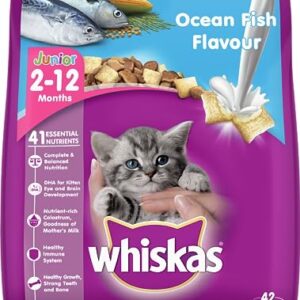 Whiskas Kitten (2-12 months) Dry Cat Food, Ocean Fish Flavour with Milk, 3kg Pack